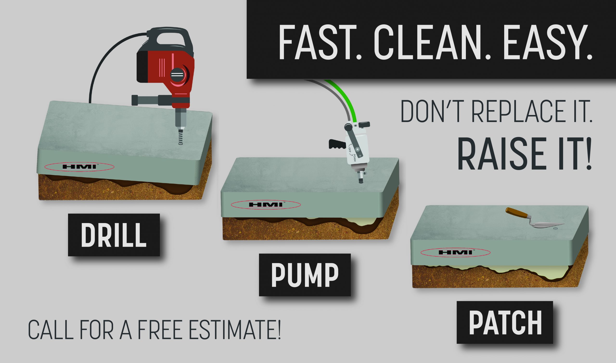 Foamjection™. Slabs of concrete that are badly cracked may be too damaged to lift.