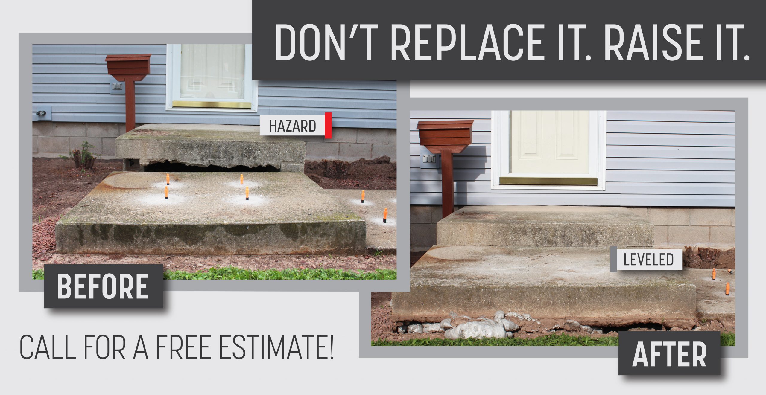concrete raising is typically about half the cost of replacing the same concrete.